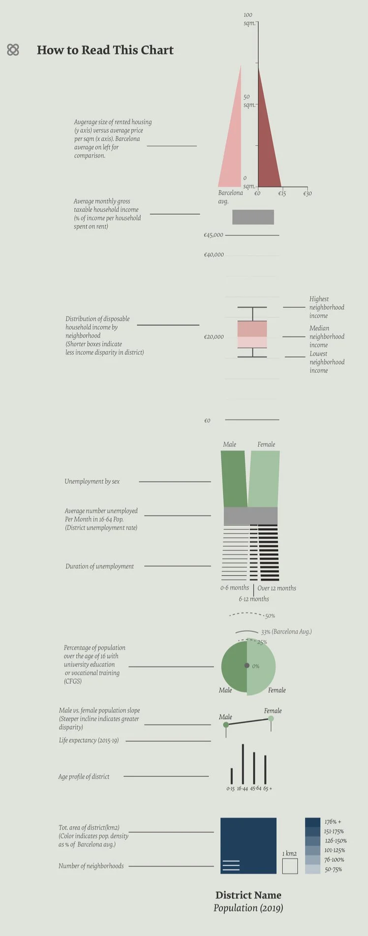 For this project, I used a number of datasets from Barcelona’s open data service. I wanted to examine the different levels of social, economic and demographic inequality that exists between the various districts in Barcelona.